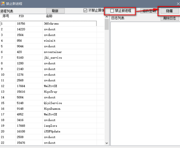对于家里有电脑的家长来讲,如何防止小孩子在用电脑时玩游戏,隐藏进程是一个好办法,这里多多小编带来了禁止新进程官方版,这是一款完全免费的进程隐藏工具,可以将新加入的进程全部禁止,并加入隐藏,从而更好的管理用户的进程,防止小孩子上课玩游戏。