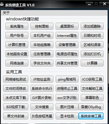 单文件封装、灰色按钮克星、显卡检测、系统安装工具