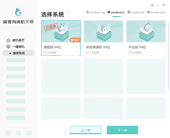 这个软件叫极客狗装机大师电脑版,是一个很实用的重装系统工具。它的界面设计得很简单,新手也能轻松操作。里面有很多系统版本可以选择,比如Win11、Win10这些,想装哪个就装哪个,特别方便。