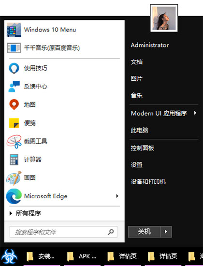 现代风格的开始菜单