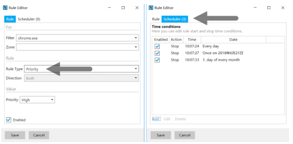 计划任务 – 指定自动启用或禁用特定规则「限制、优先级」的时间;