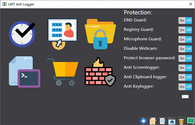 LMT Anti Logger官方版是一款专业的系统防护软件,该软件可以帮你解决各种情况导致的系统漏洞和威胁。如果你担心一些常规的系统漏洞让你的系统被入侵,可以安装这款软件加强防护,目前软件提供了家用卫队、DNS防护、重置守护者、注册表守护者、麦克风护罩、替换网络摄像头、保护浏览器密码、反屏幕记录器等功能,还可以帮助将系统漏洞修复,让你的系统安全性能增强。另外软件简单易用,性能强大、防御能力更强让你可以无忧无虑的网上冲浪,让你的电脑更加的清洁健康,有需要的赶紧点击下载吧。