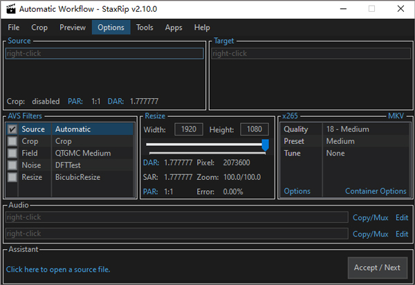 StaxRip 是一款简单又高效的视频格式转换器,操作起来超级方便。它支持多种音频编码方式,比如 AAC、MP3、Opus 等,还能处理一些比较小众的格式,像 AC3 和 Ogg Vorbis,特别适合需要转码特殊音轨的用户。界面设计得很简洁,基本上点几下就能完成转换,完全不用担心复杂度。