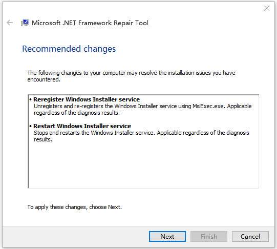 该工具可能会对已安装的 .NET Framework 版本进行一个或多个更改。 例如,它可以更正计算机上的 Windows Installer 状态、重置某些文件夹中 (DACL) 的任意访问控制列表,或解决与更新注册无效或损坏相关的问题。
