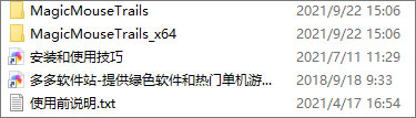 1、下载并解压,得到MagicMouseTrails绿色中文版;