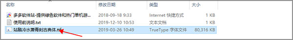 1、在本站下载并解压好压缩包后,双击文件夹中的“站酷冷水萧青刻古典体.ttf”;