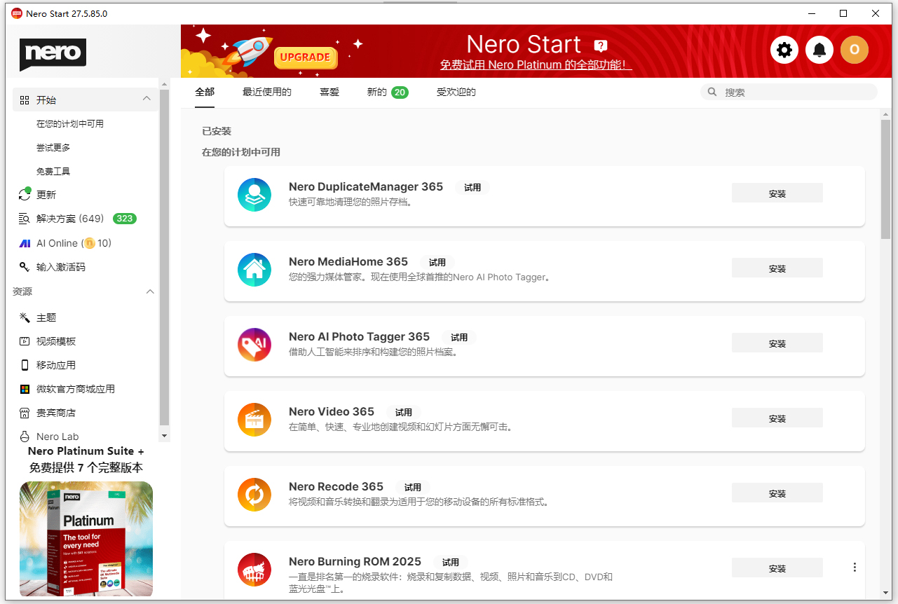 6、可以免费试用多个产品,包括nero burning rom 2026,nero video 365, nero express 365等;
