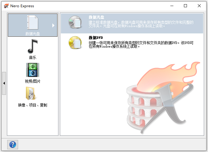 建立标准数据光盘,数据光盘可用来保存所有类型的文件和完整的文件夹。