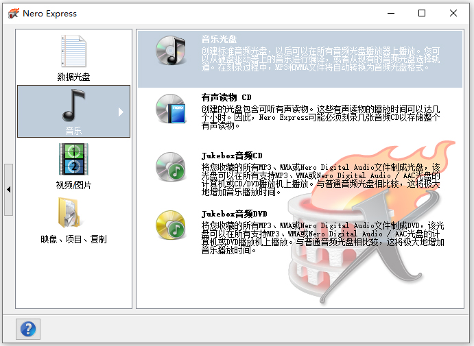 将你收藏的所有mp3\wma或nero aac文件制成一张cd,此cd可以在所有支持mp3\wma或nero aac光盘的计算机上播放。