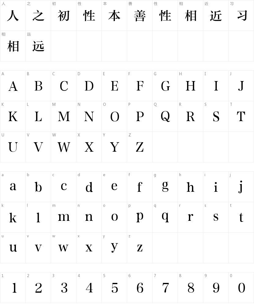 方正准雅宋简体字符映射图
