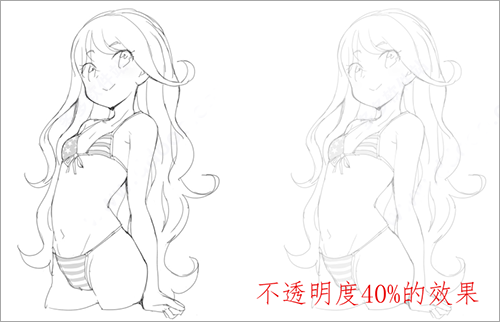 可以降低图层的透明度,一般用于降低草稿透明度。然后绘制精细线稿。