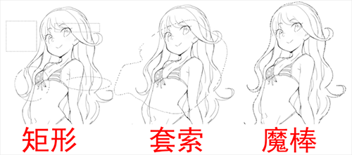 矩形选区、套索选区、魔棒选区,三个统称选区工具。他们的目的性是一样的,只是针对不同的情况选择不同的选区工具。