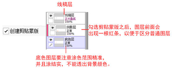剪贴蒙版的概念就相当于一层透明遮罩,蒙版图层之下随便怎么画都不会画到外面。同样的效果还可以用锁定透明度来完成。