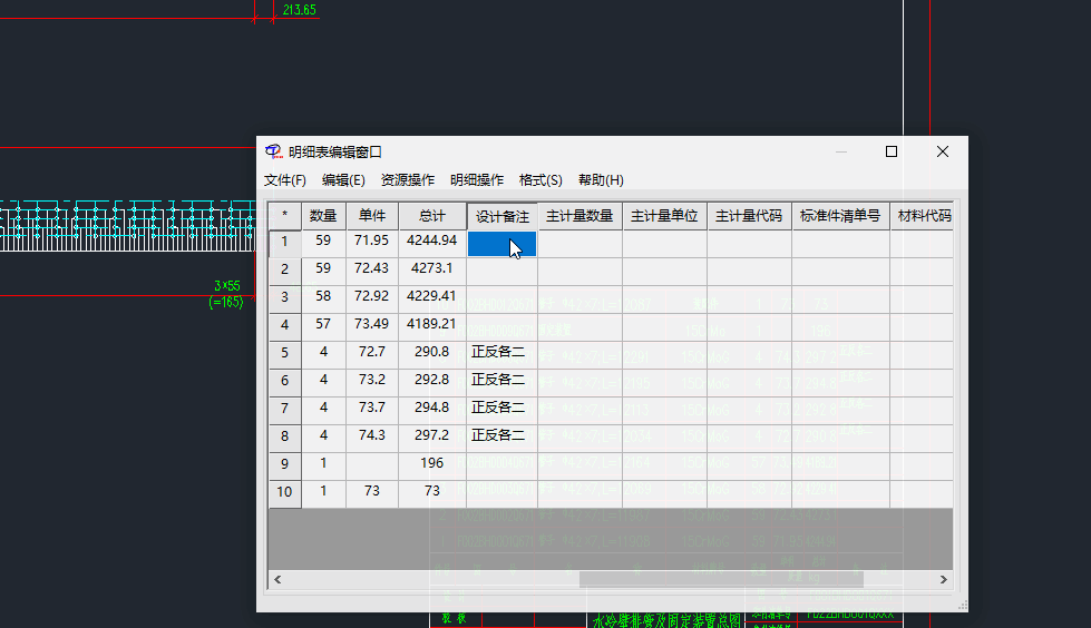 - 根据提取配置,提取整套图纸的标题栏、明细表数据。