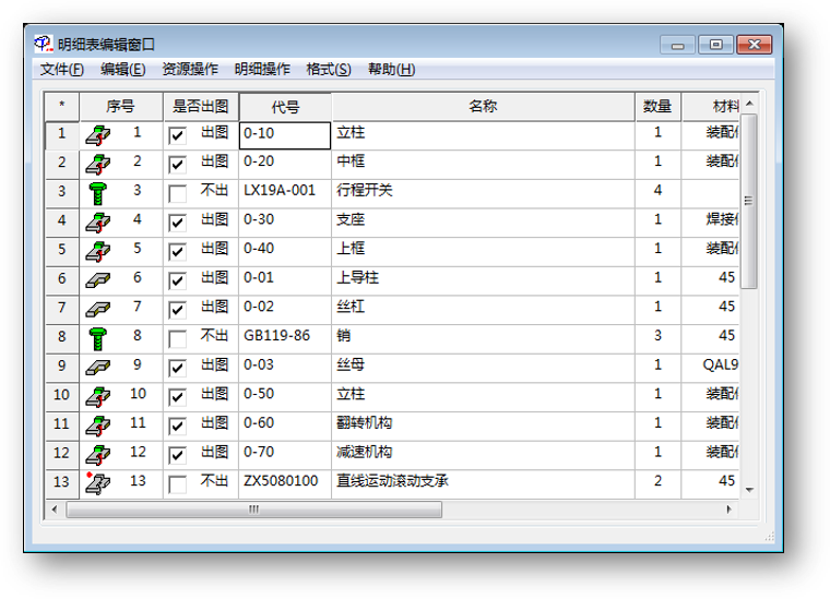 - 并可以对装配图明细表与零件图标题栏的数据进行关联检查。