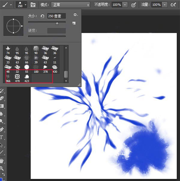 4、找到最后一个画笔就是ps光影笔刷,调整大小后可以直接放在图片上使用。