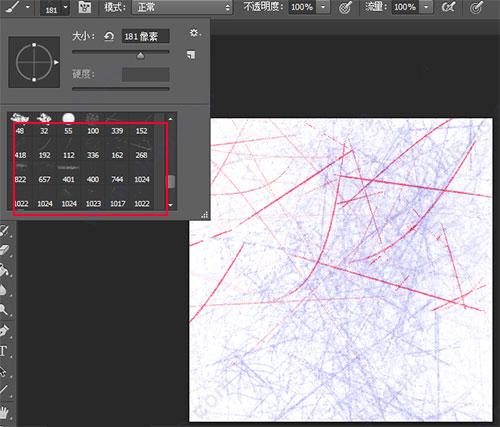 5、找到最后的画笔就是自制式划痕刻痕效果笔刷,有多种类别,用户可以调整大小直接放在图片上使用。