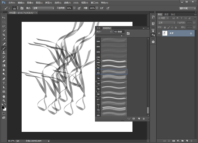 5、找到最后的画笔就是ps飘带笔刷,有多种类别,用户可以调整大小直接放在图片上使用。