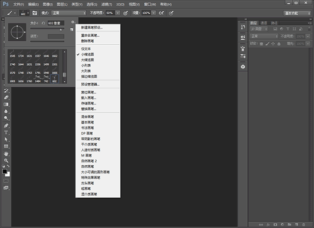 2、点击画笔工具后,在菜单栏的下方会出来画笔工具的状态;