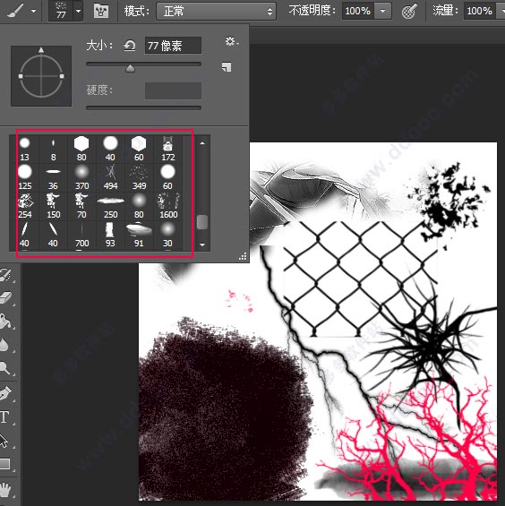 5)单击工具箱中的画笔工具,在工具属性栏里就可以找到我们刚才新载入的笔刷了。