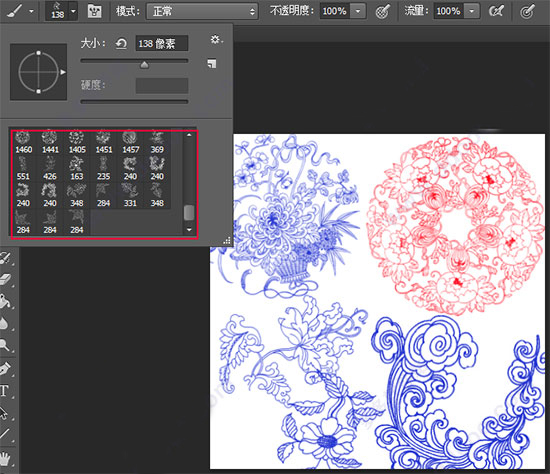 5、找到最后的画笔就是中国古典花纹笔刷,有多种类别,用户可以调整大小直接放在图片上使用。