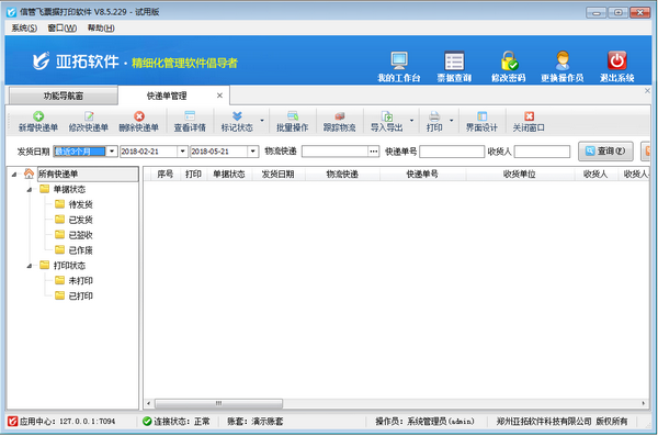 三、点击快递单管理可以看到所有的快递单状态