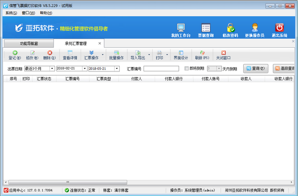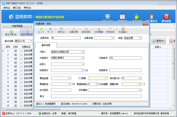 全方位的票据操作权限控制,支持功能控制和环节控制,不同操作员可以有不同的功能权限。软件支持定时备份数据,有效保障数据安全。