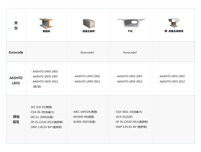 3、提供丰富的材料和截面数据库,以及混凝土收缩和徐变规范和移动荷载规范。