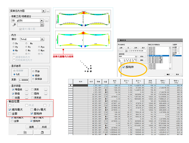 按构件输出内力结果功能。