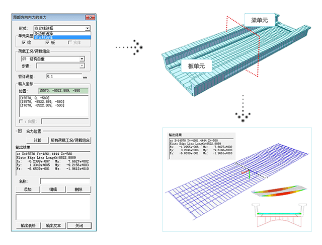 梁+板单元/梁+板单元+实体单元的局部方向内力的合力功能。
