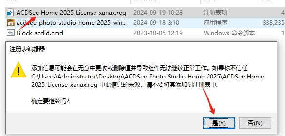4、双击运行注册表文件,并点击是;