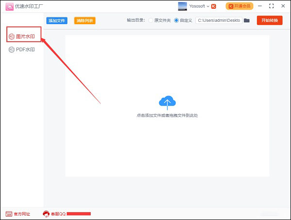 步骤1,通过上面的下载链接或者百度搜索“优速水印工厂”下载软件,然后安装打开,点击软件左边的【图片水印】功能,进入下一步操作。