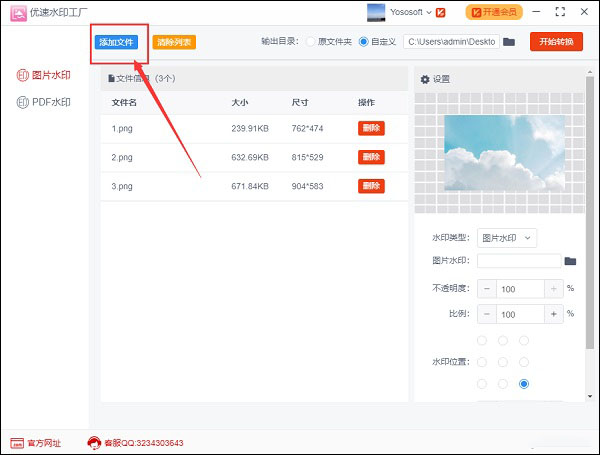 步骤2,接下来就是将图片导入到软件中,可以通过点击【添加文件】或者直接拖动图片到软件上的方式进行导入,请一次性批量导入批量添加,节省时间。