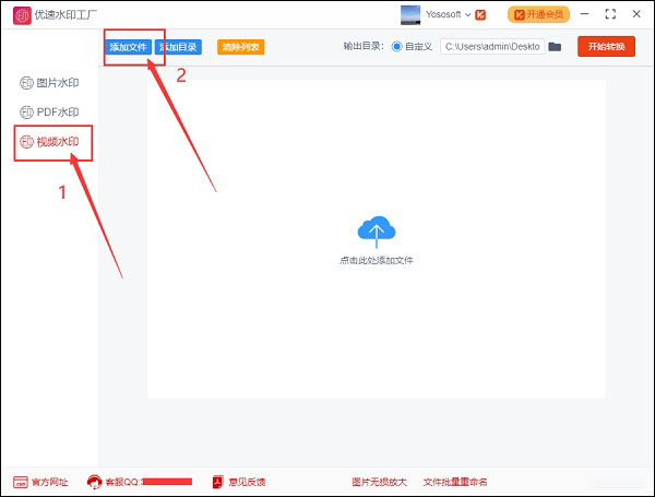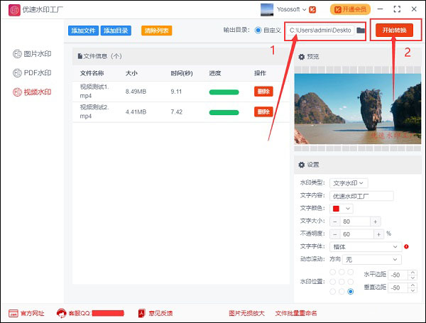 步骤3,最后设置输出目录(也就是保存位置),点击【开始转换】按钮,启动软件程序。所有视频添加水印成功后,软件会自动打开视频的输出文件夹。