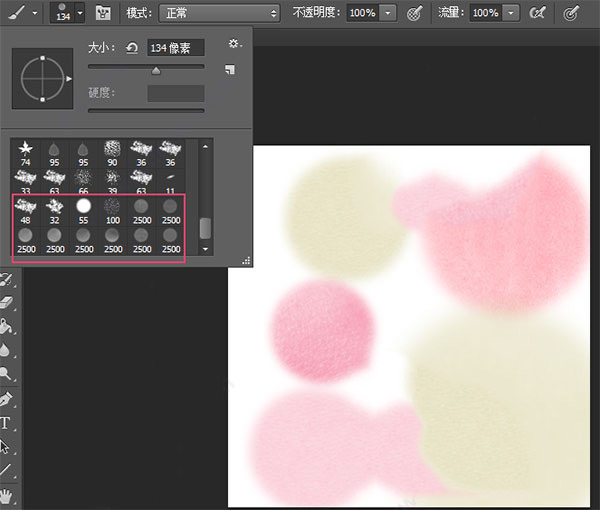 5、找到最后的画笔就是ps皮肤笔刷,有多种类别,用户可以调整大小直接放在图片上使用。