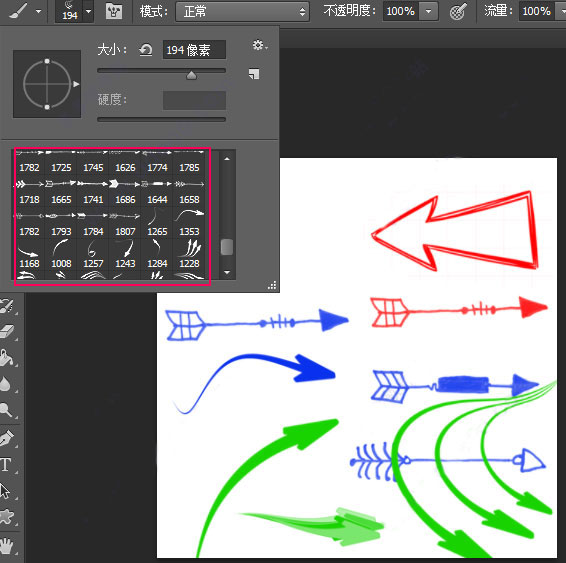 4、找到最后的画笔就是ps箭头笔刷,有多种类别,用户可以调整大小直接放在图片上使用。