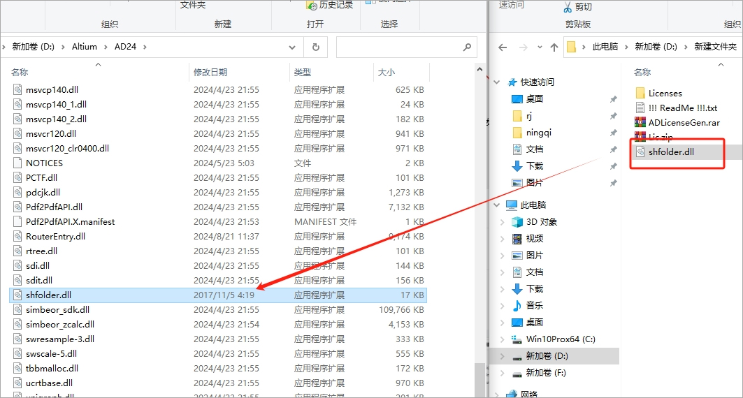 1、下载解压,得到altium designer 24最新版本,含补丁文件shfolder.dll和许可证生成器Adlicensegen.exe;