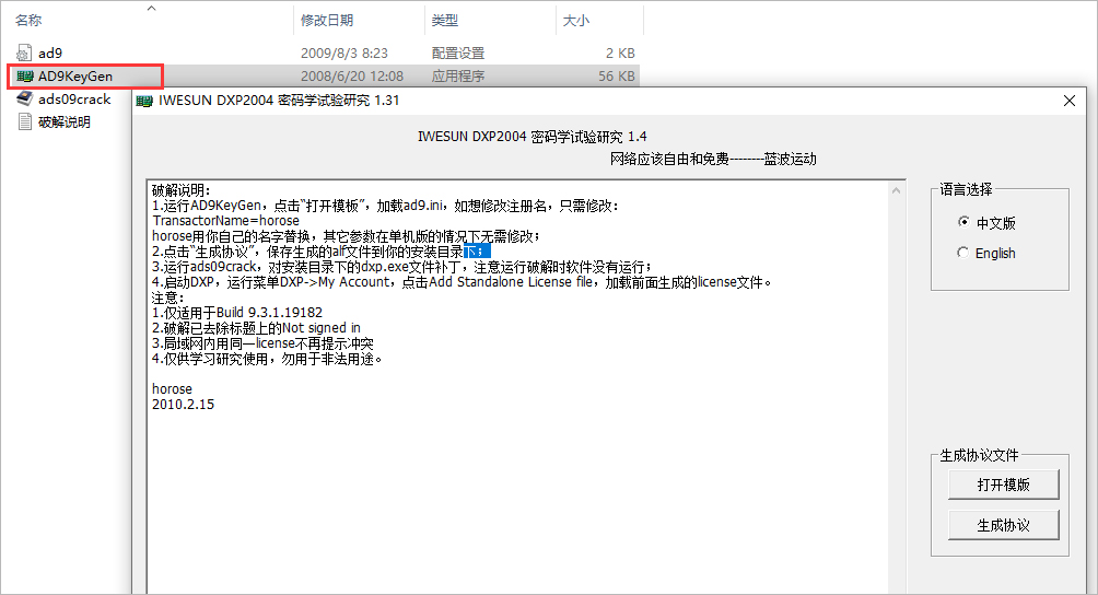 5、接下来对软件进行激活,运行Crack的AD9KeyGen注册机;