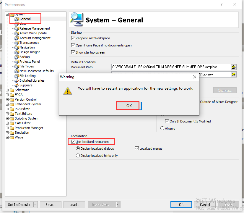 14、点击General,勾选Use localized resources,然后就会弹出一个对话框,点击OK,将软件关闭重启就是中文界面的了。