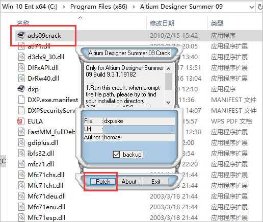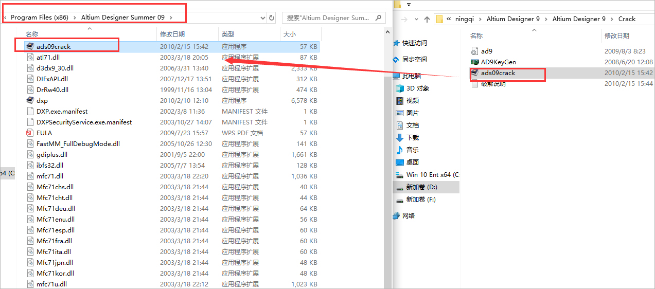 9、复制ads09crack到安装目录,将Crack文件夹的ads09crack应用程序复制到安装目录下,通常如果刚才安装软件时没有更改安装路径的话,安装目录就是:C:\Program Files (x86)\Altium Designer Summer 09