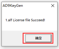 8、此时许可证文件成功提醒,点击确定就好;