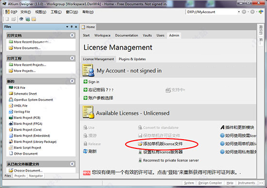 9、选择安装包,Licenses目录下任意一个文件载入即可,Altium Designer 13中文特别版安装完成。