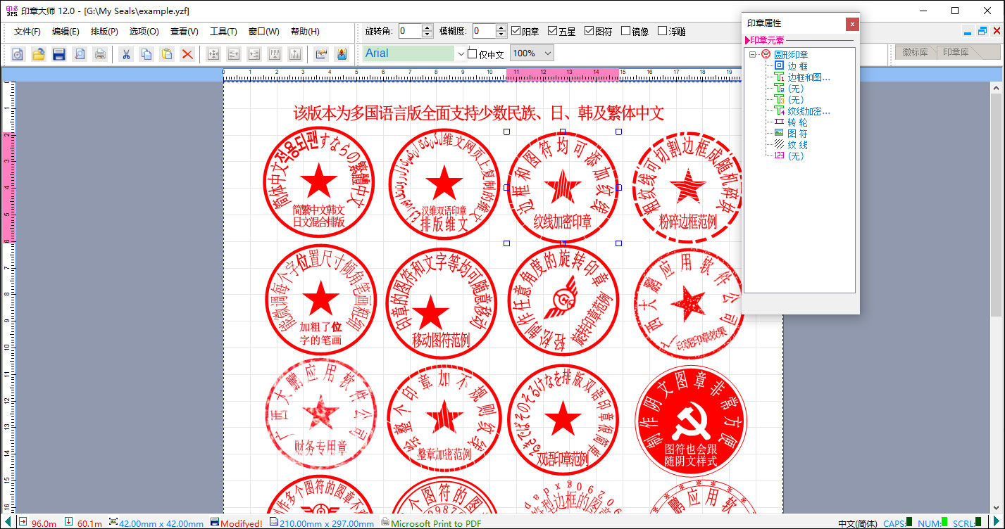4、功能包括:艺术印章、公章、私章、阳章、阴章等形式,可以将多个不同效果的印章组合成复杂印章。