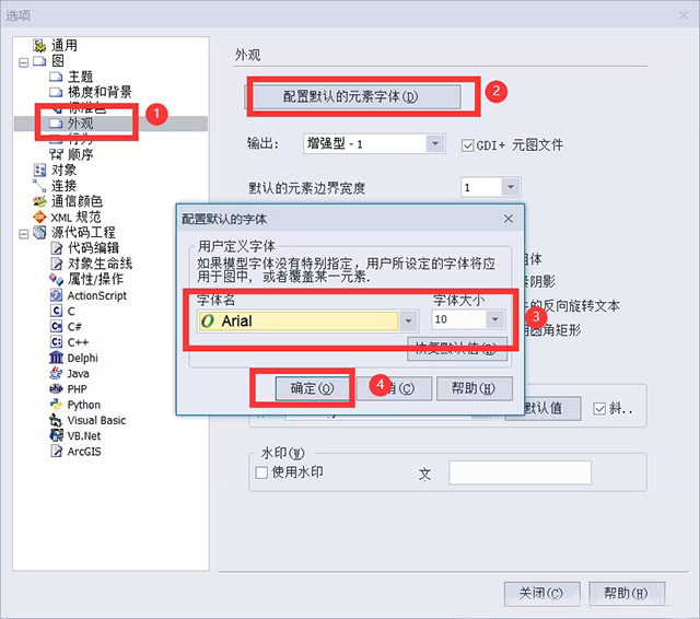 2、点击外观——>配置默认的元素字体——>选择字体大小——>确定