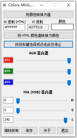 colors minilab是一款专业的颜色识别软件,这款软件可以帮助用户快速的获取您的电脑屏幕上任意的一处颜色,并且可将语塞进行转换为十六进制、十进制,其可以让这个软件一直显示在最前面,从而不让其他窗口遮住视线,非常简便,同时还提供的调节色彩功能来调整颜色的饱和度和亮度,甚至用户还可以直接在里面选择你要的大概颜色,然后慢慢调整,直到满意为止,非常实用。