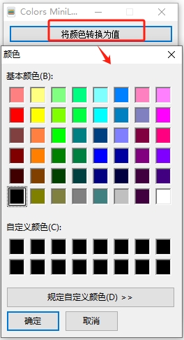 2、将颜色转换为值即可快速的对颜色进行选择。
