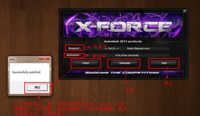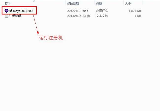 1、注册机解压后,32位系统请运行:xf-maya2013_x32.exe,64位则运行:xf-maya2013_x64.exe,进行算号注册。