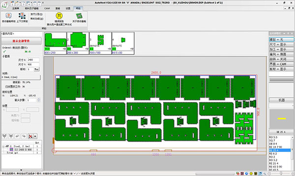 的自动套裁模块可用于冲床、切割及切管,内置的多种算法保证了极高的材料利用率及最合理的排版方案。