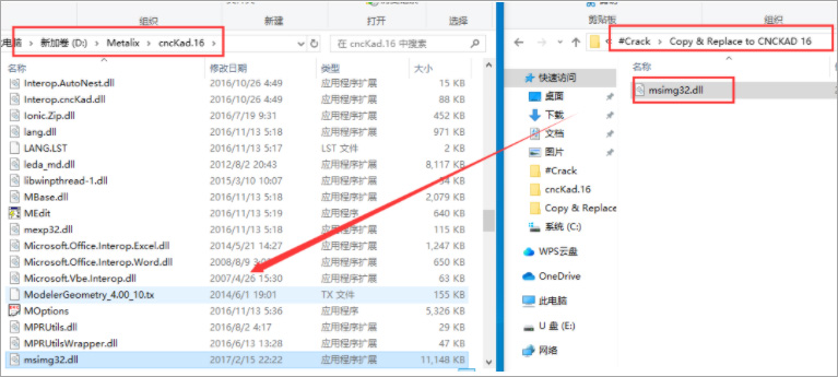 即:将#Crack\Copy & Replace to CNCKAD 16文件夹里面的msimg32.dll复制软件安装目录下;