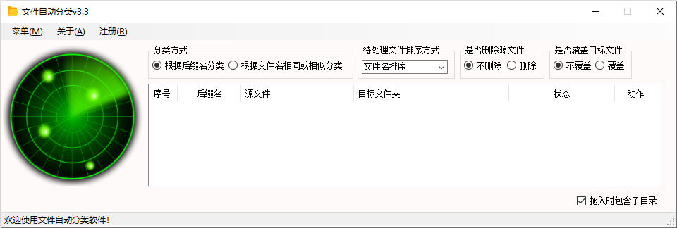 用鼠标将多个文件或文件夹拖入雷达区,软件自动根据用户的要求: